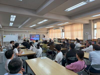 伝達講習会 投稿: ホームページ管理者 (18:18) 中間テスト1日目が終わった後に先生たちは図書館に集まって講習会を開きました。 今回の講師は伊勢先生にお願いしました。 伊勢先生からは、この夏に受けてきた講義についての内容を三中の先生方に伝達いただきました。 テーマは、コーチングです。 バスケットボールの内容でしたが、学級づくりや生徒との関わり方など非常に濃い時間となりました。
